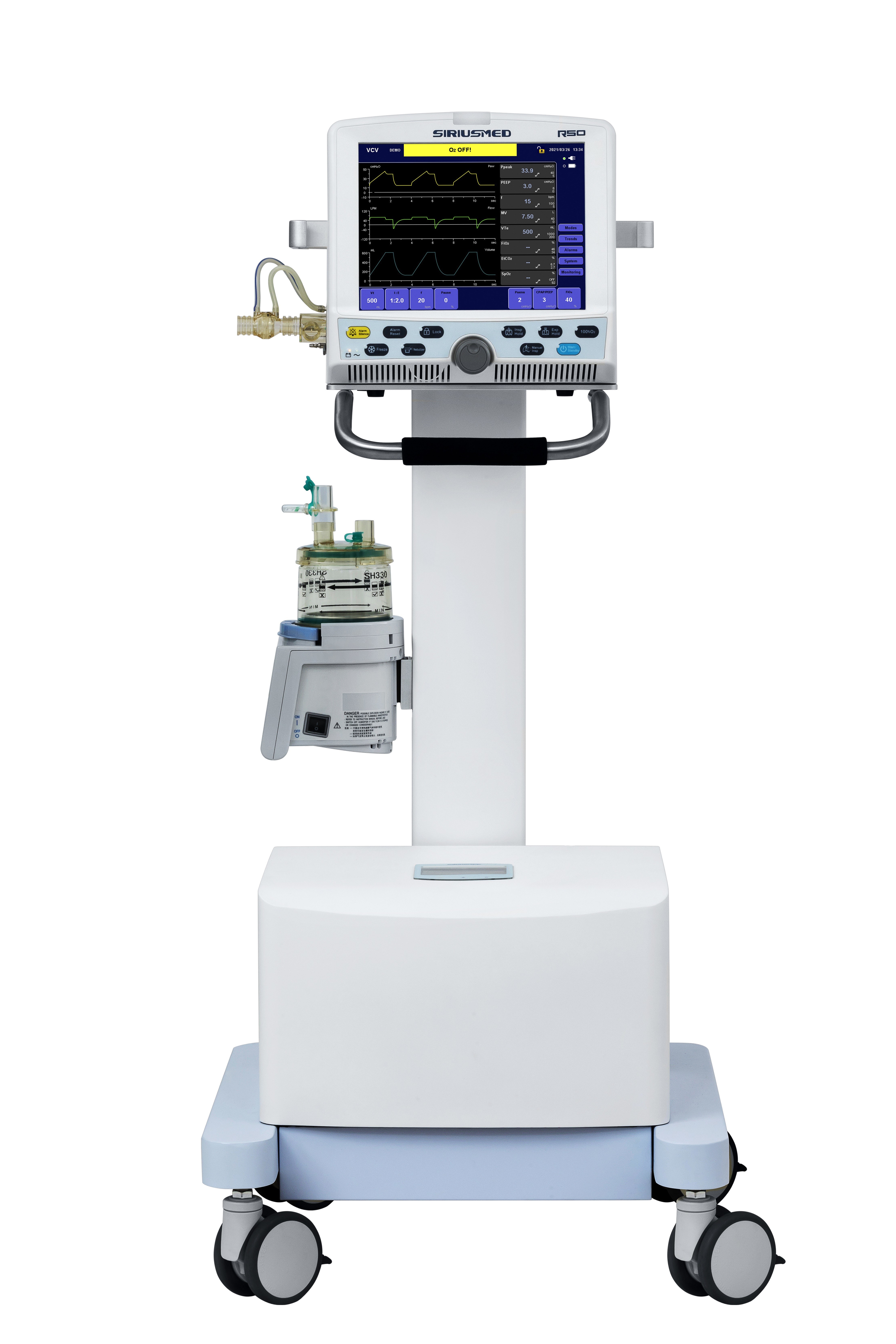 Achieve que respira durante inspiratory e expiratório. Controla ativamente a pressão do alvo, impedem a elevação de pressão da via aérea, promove o synchrony paciente do ventilador. Facilmente removível e sterilizable a válvula da exalação & o sensor de fluxo modulares.
