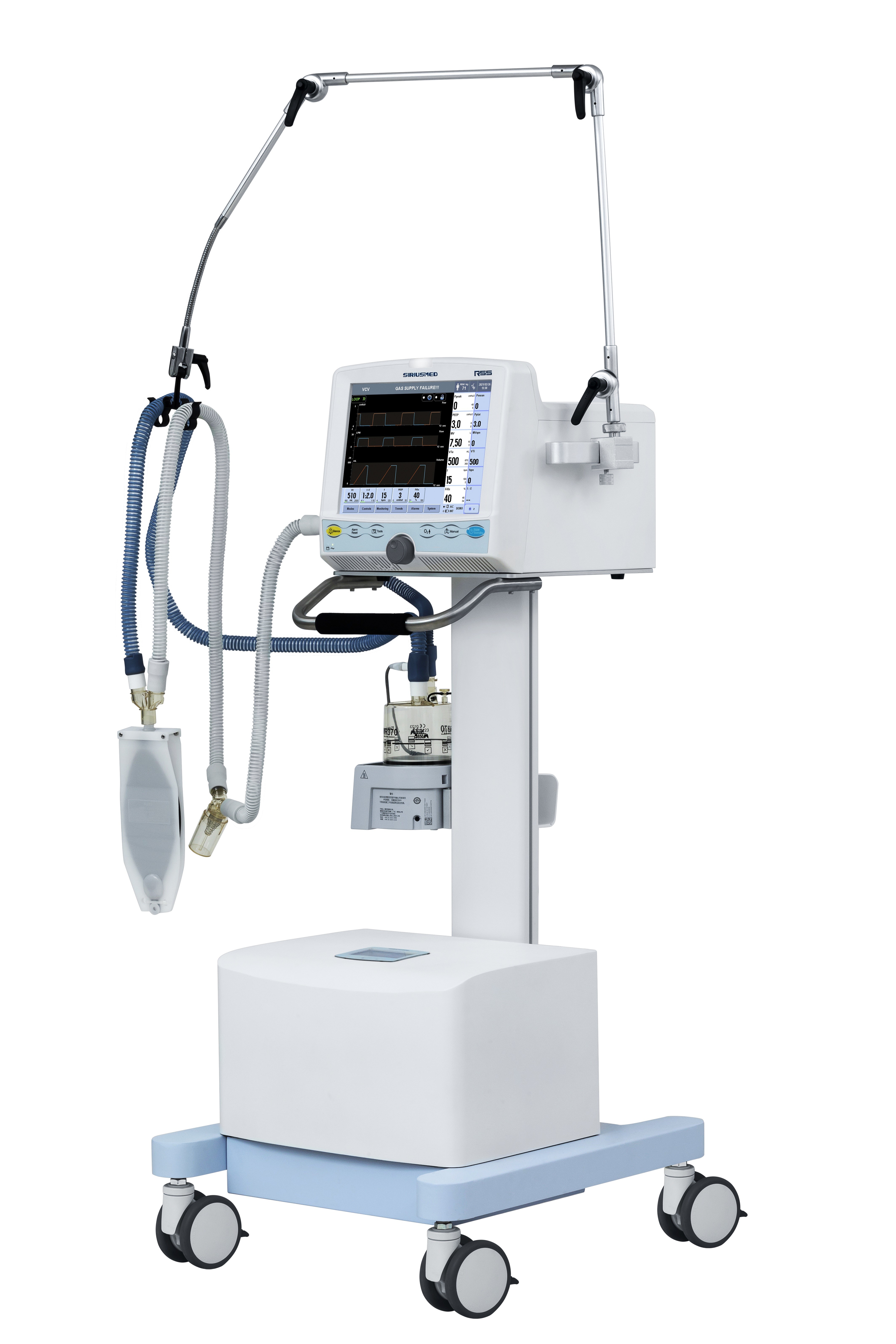 • Ventilador pneumaticamente conduzido e eletronicamente controlado de ICU
